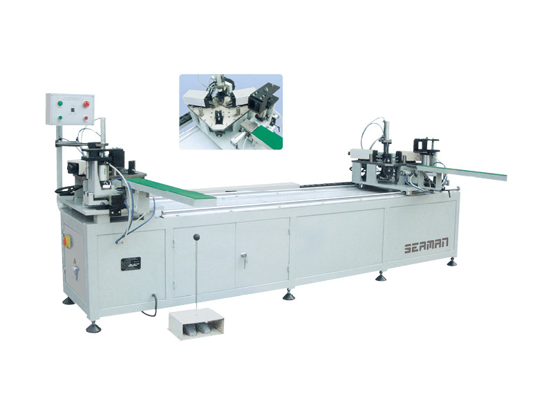 鋁門窗雙頭組角機(jī)是高檔鋁門窗專用設(shè)備,可一次完成兩個(gè)角的角碼式?jīng)_鉚聯(lián)接。
